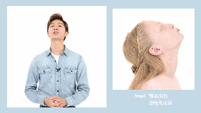 step1: 抬头将颈部往上延伸维持5秒,拉伸颈部肌肉。